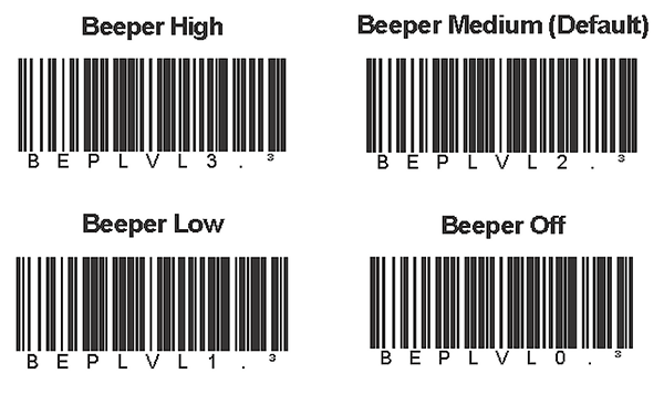 - Program your preferred sound level by scanning the appropriate barcode below.